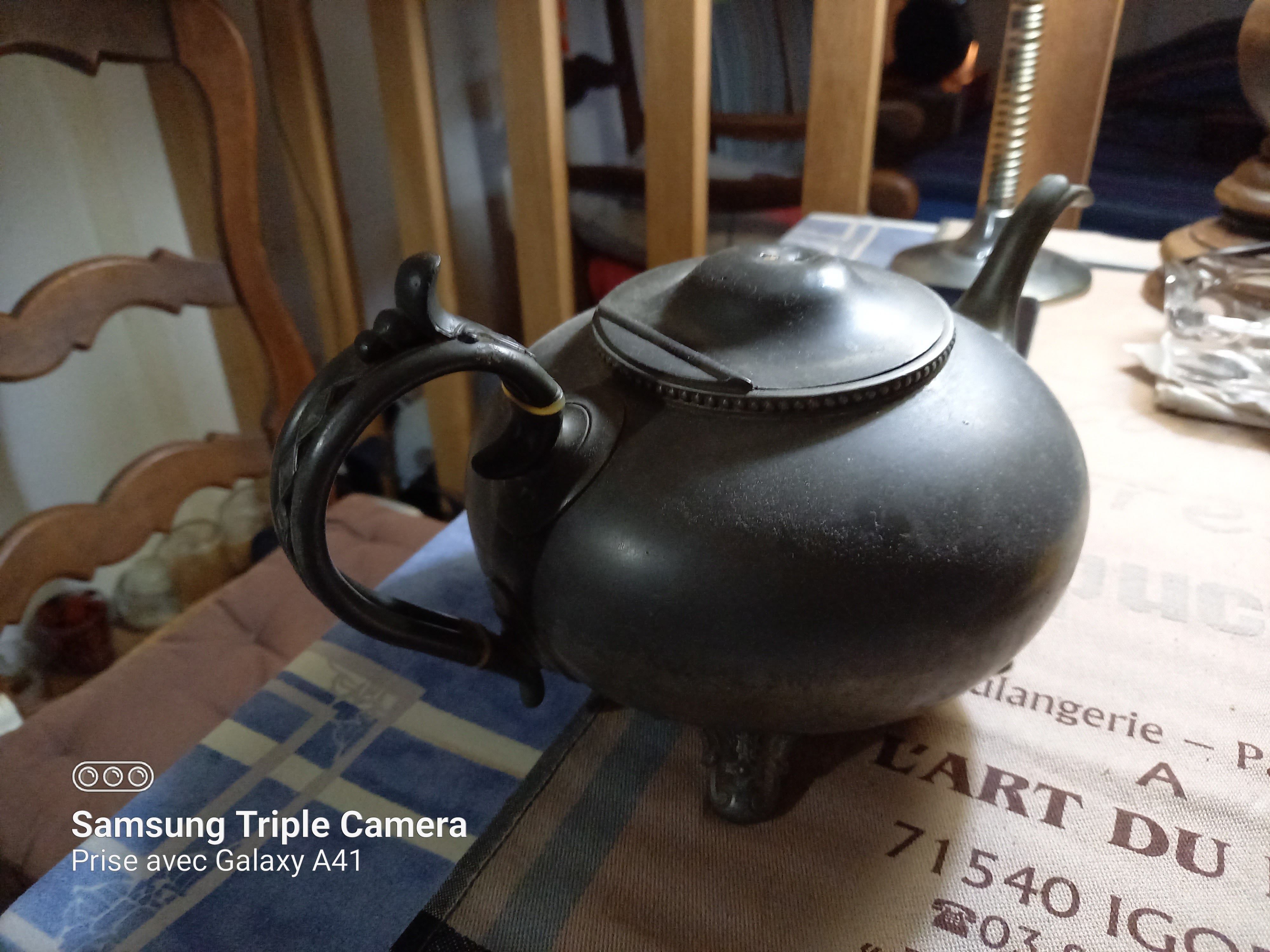 En démarchage pour vendre à des Antiquaires : 1) - une cafetière en étain de style Oriental , 2) - 3 éditions de la Librairie Académique de PARIS avec André CASTELOT ( 1 VOLUME ) et Alain DECAUX ( 2 VOLUMES ) , démarchage téléphonique les uns après les autres ... et n'interessant personne en plus ; je suis tombé sur METRA Marie-Claude . Dialogue poli de sa part , convainquant de la mienne , Mme METRA me demanda de lui envoyer les photos de mes objets par SMS pour qu'elle puisse se faire une opinion . Je le fis donc sans tarder ! Sympathique , elle me rappela 10 m n après l'envoi de mes photos et ... dernier refus de la journée émanant de Mme METRA . Son magasin se situant à AUTUN et moi étant à NOLAY , je n'avais pas le projet de m'y rendre étant donné l'heure tardive : 17 h 45 mn . J'imaginais simplement ce que pouvait être son magasin , ne l'ayant jamais vu . Lorsque je passerai à AUTUN un de ces jours , ma curiosité me poussera à franchir sa 🚪 porte ! En attendant cette future visite , je vous retrouverais pour d'autres commentaires et photos . Bien cordialement à Toutes et à Tous . Philippe AUBE 💥